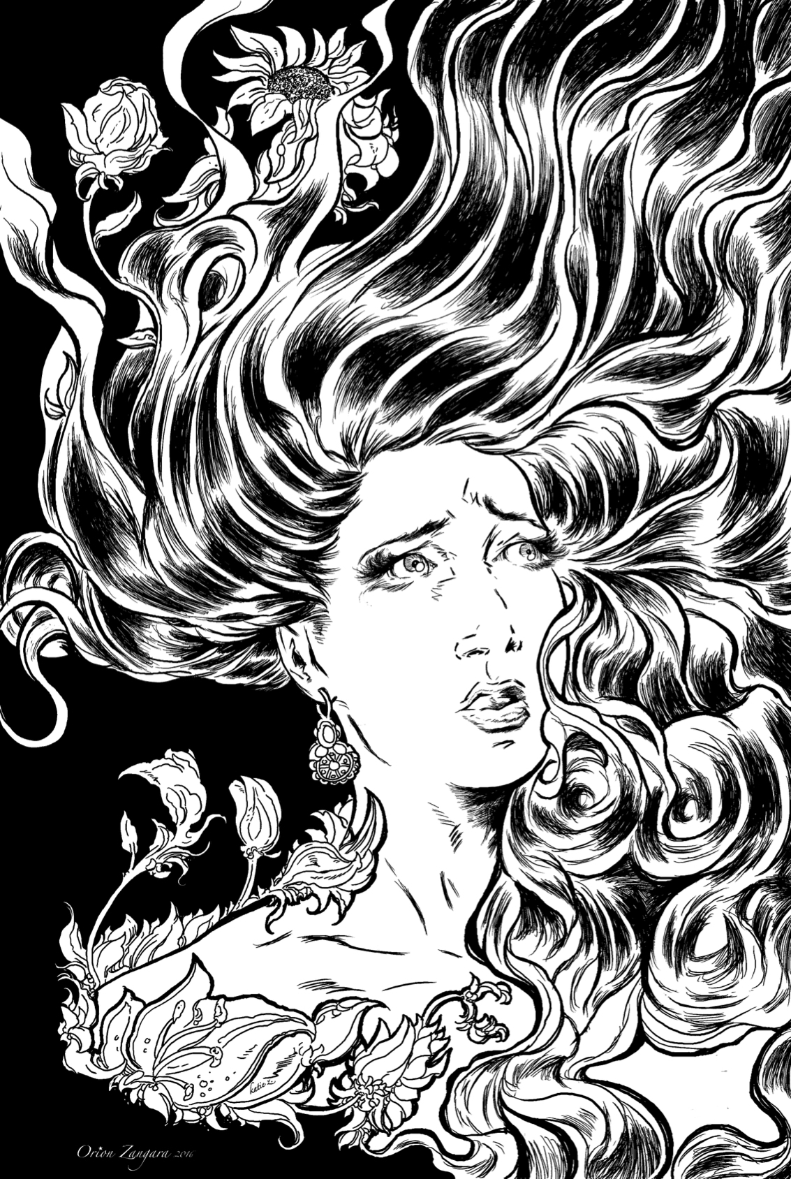 Here is an illustration from Gene O’Neill’s novel, THE CAL WILD CHRONICLES: THE NEAR FUTURE, with an introduction by Meghan Arcuri-Moran and edited by Michael Bailey. The illustration is a bit reminiscent of my “Moonlight While Walking” drawings that I did years ago (which I’d like to revisit when I have time to work on my own personal pieces). Also, I’m now entirely inking digitally, so I hope my drawing still maintains the same quality.